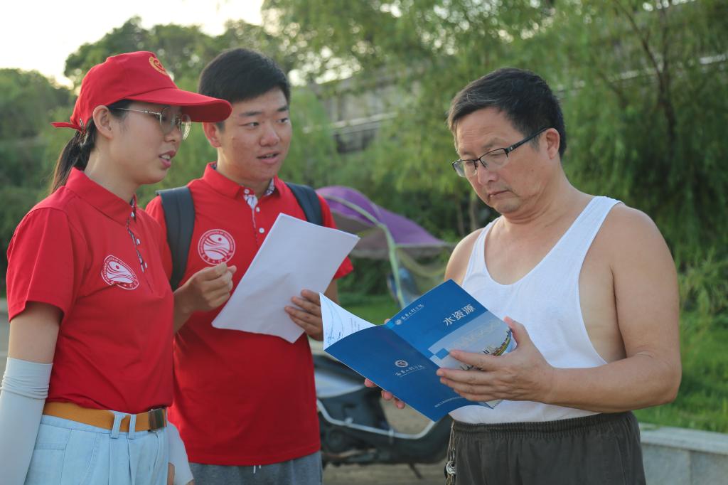 当天下午,实践团成员在万安县芙蓉镇进行水利生态调研活动,了解水利建设对当地影响,宣传农业节水政策。成员们走访群众,与老乡们亲切交谈,在深入了解当地群众用水情况的同时,也向他们普及了基本水利知识。通过调查和交流,队员们不仅获取了大量真实有效的数据,更坚定了发展好水利事业,为老百姓谋更大福利的决心和信心。