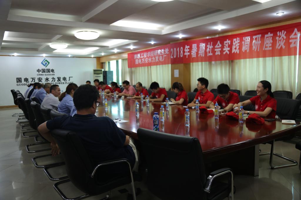 10日上午,实践团一行来到国电万安水力发电厂进行参观学习。水电站相关领导对实践团的到来表示热烈欢迎,并带领大家参观了万安水电厂展览室,了解水电厂建设发展历史。之后举行了座谈会,万安水电站相关部门负责人介绍了水电厂的建设历史、发展情况和前景规划,实践团负责同志和指导老师就国电万安水电厂给予南昌工程学院研究生暑期实践的热情帮助和大力支持表示衷心感谢!并简要介绍了学校水利办学传统、改革发展历程以及研究生教育培养等方面情况,同时也说明了此次研究生暑期社会实践的目的与任务。会上,双方还就水电厂建设运营对万安县经济发展、水利生态以及管理运营如何适应新时代发展等问题进行了深入的交流和讨论。会议结束后,实践团一行还参观了中控室、坝顶、船闸、厂房和水情调度中心等部门及设施。在实地调研中,电厂工作人员对发电原理、中控相关参数、预报系统等进行了详细介绍,实践团成员也表现出极大的兴趣,积极交流和咨询,提高了认识和拓展了视野。