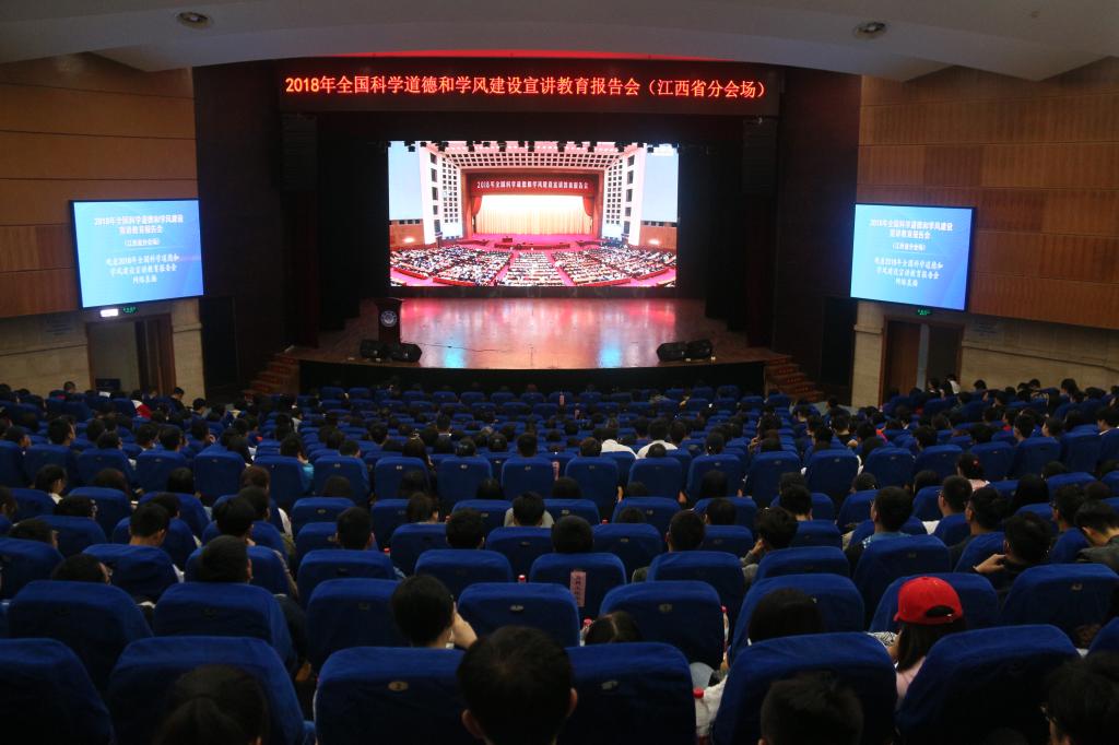 10月15日下午,2018年全国科学道德和学风建设宣讲教育报告会在人民大会堂举行。为学习贯彻党的十九大、习近平总书记关于科学道德和学风建设的重要指示精神,研究生处组织2018级研究生代表前往南昌大学江西省分会场与江西省各高校2018级研究生共同观看了全国科学道德和学风建设宣讲教育报告会的现场直播,在校研究生处师生通过网络视频同步收看了报告会。