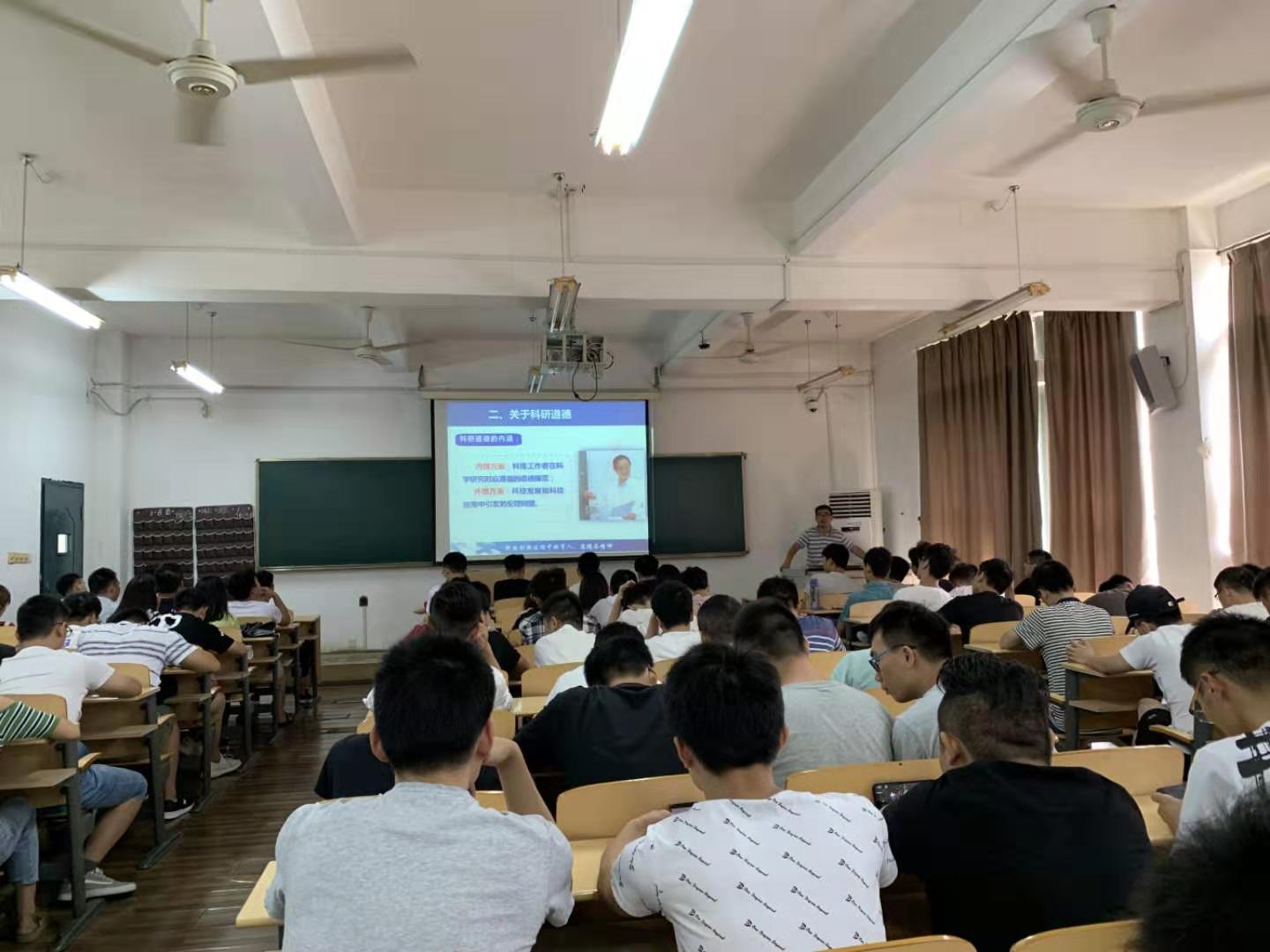 9月5日上午,研究生处副处长王伟以“科研道德与科研精神”为主题给2019级硕士研究生作了专题讲座。他以网上学术不端的例子引入,希望同学们能够重视科研道德与科研精神,在未来三年的研究生学习的过程中要有严谨的科研态度,认真对待自己的研究生的科学研究。