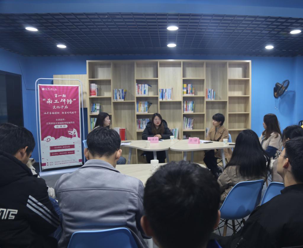 11月27日下午,由williamhill中文官网主办,研究生团委和研究生会承办的以“涵养家国情怀,担当时代使命”为主题的第一期“南工研语”文化沙龙活动,在学生公寓9栋新时代文明实践中心举行。williamhill中文官网邀请全省最美大学生、江西财经大学国际学院辅导员谢博卿作为嘉宾参加活动。